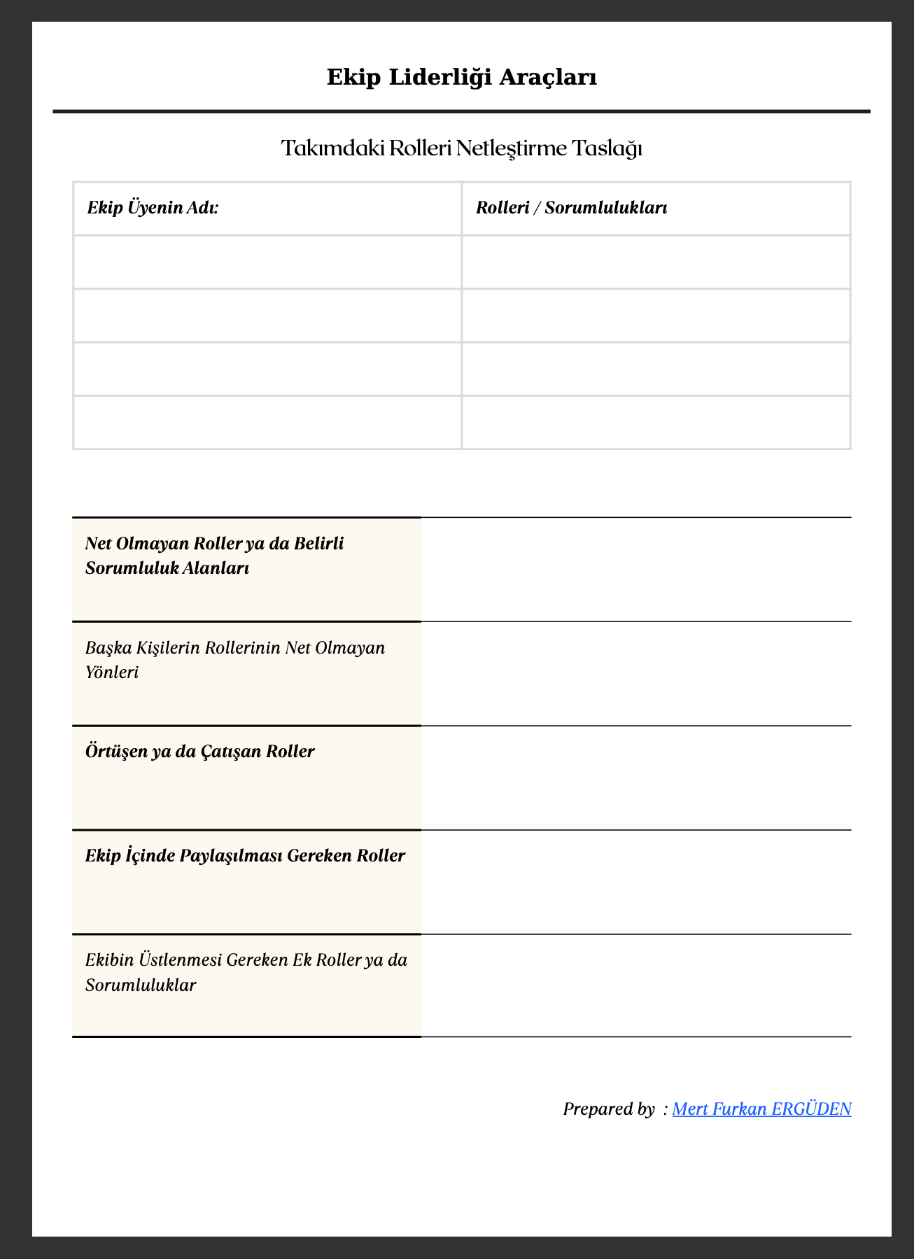 Ekip Liderliği Araçları:Takımdaki Rolleri Netleştirme Taslağı